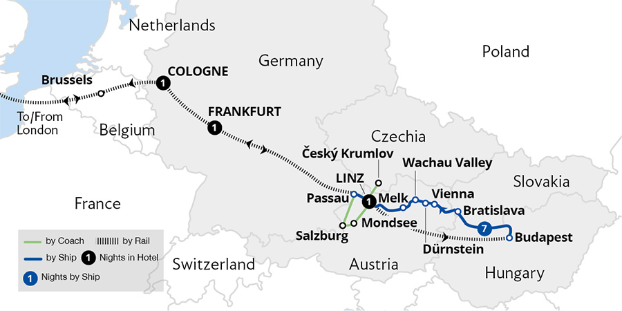 Uncover the gems of Hungary, Slovakia and Austria on a luxurious Danube river cruise. Explore the fascinating cities of Budapest, Bratislava and Vienna, marvel at the striking Melk Abbey in the Wachau Valley, indulge in local cuisine and sample some of the region's finest wines. Choose to spend a day in historic Salzburg, the birthplace...