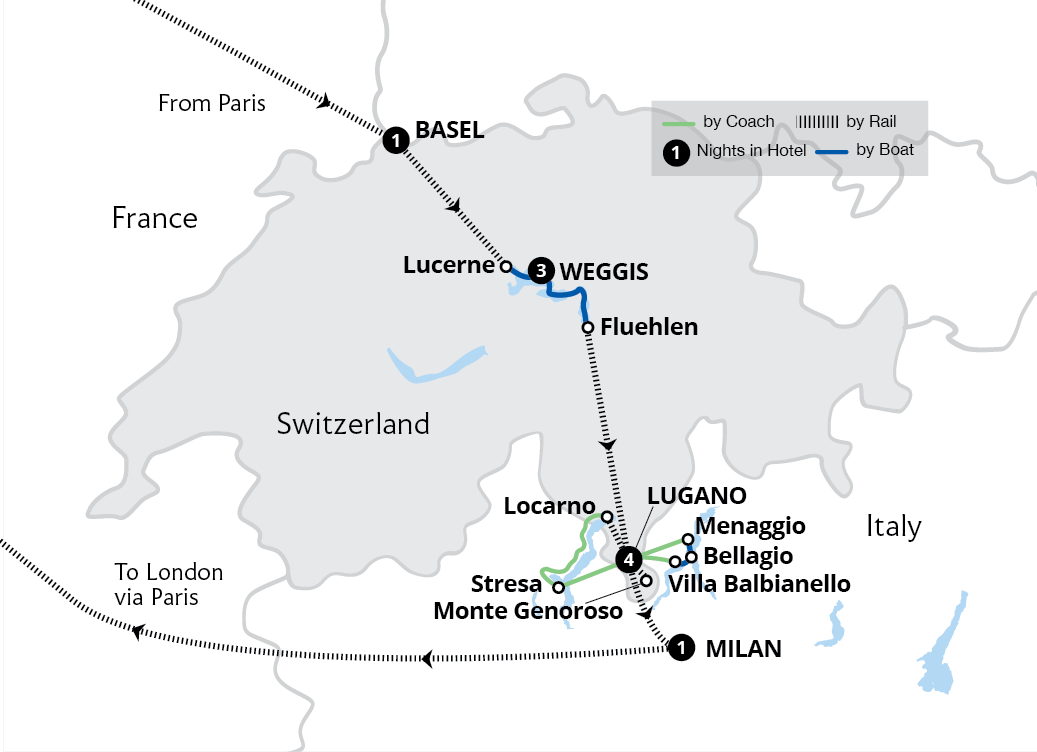 Embark on a captivating journey with our Italian Lakes escorted