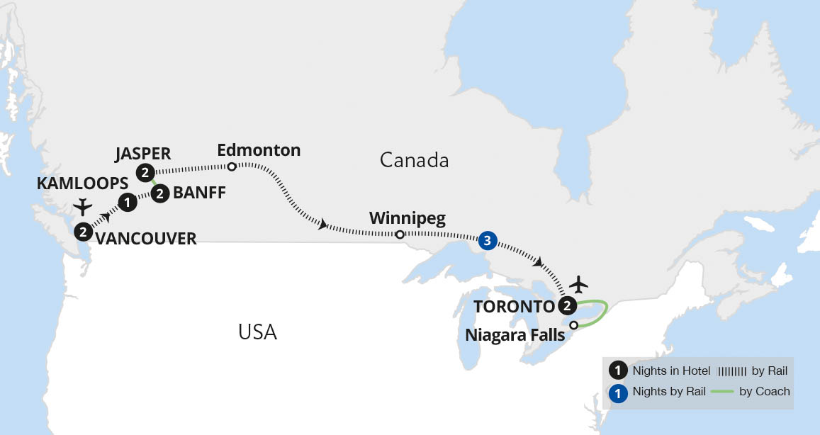 Delve into the remarkable landscapes of Canada on world-famous trains. Our exploration begins with a guided tour of beautiful Vancouver on the Pacific coast before we enjoy two daytime trips on the amazing Rocky Mountaineer to the astonishing Canadian Rockies. Based in gorgeous Banff and Jasper, we admire awe-inspiring Lake Louise and the...