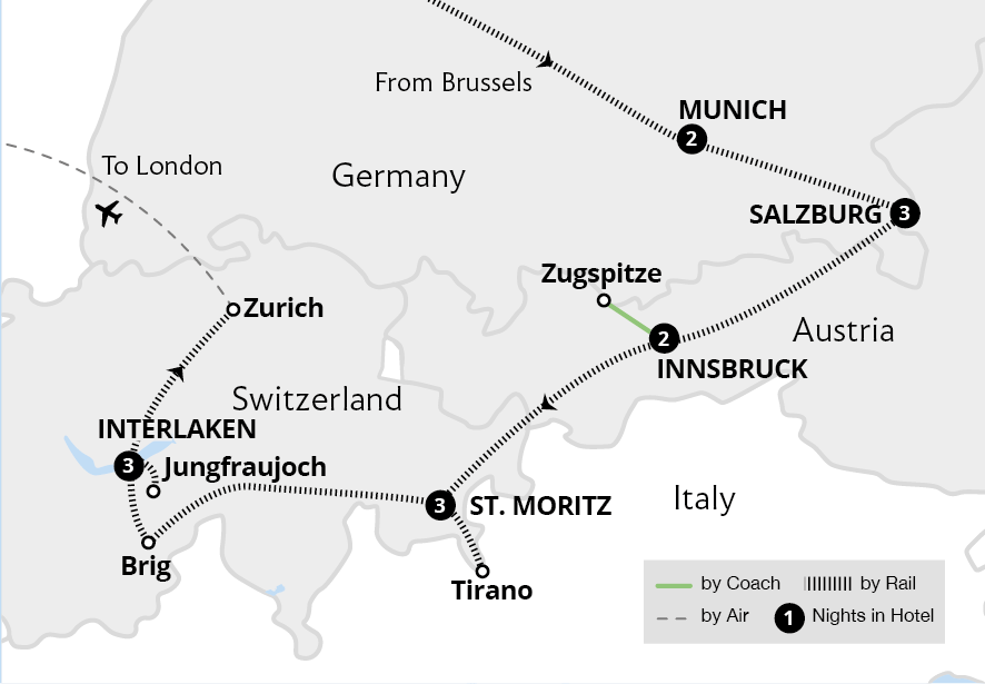 Bask in boundless displays of jaw-dropping views on a spectacular First Class holiday through the Alps, uncovering the culture and history of three countries and journeying on iconic trains. Soak up the atmosphere of historic Munich on a beer tour, marvel at the fairytale Neuschwanstein Castle and indulge in a Mozart concert dinner in...