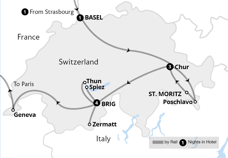 Staggering mountain peaks and serene alpine lakes provide the extraordinary setting for this holiday as we travel in First Class all the way, including on the iconic Bernina Express and Glacier Express. Staying in the Engadine Valley and the popular mountain resort of Zermatt provides idyllic bases from which to explore the Swiss Alps by rail. ...