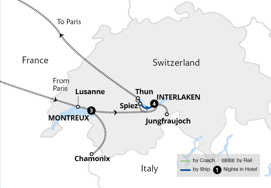 • Explore fairytale towns and cities, including Grindelwald and lakeside Lucerne