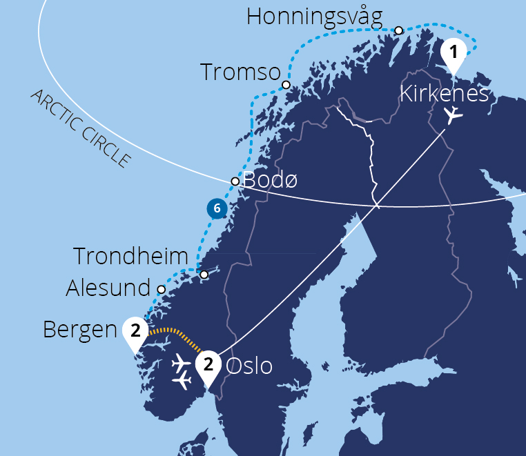 Join us on a summertime journey across the length of Norway - from Oslo to the Arctic Circle. Travel on four of the country's world-renowned rail routes, the Flåm, Bergen, Nordland and Rauma railways and cruise across the Geirangerfjord, discovering otherworldly landscapes. On this top-rated tour of Norway's beautiful cities and the arctic...