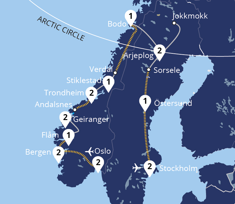 Experience Norway's breathtaking mountains, glaciers and azure fjords, and explore Swedish Lapland's untamed wilderness on this epic holiday, packing in every one of the great Scandinavian rail experiences, crossing the Arctic Circle to the 'Land of the Midnight Sun'. Our grand tour combines Scandinavia's natural wonders with its ...