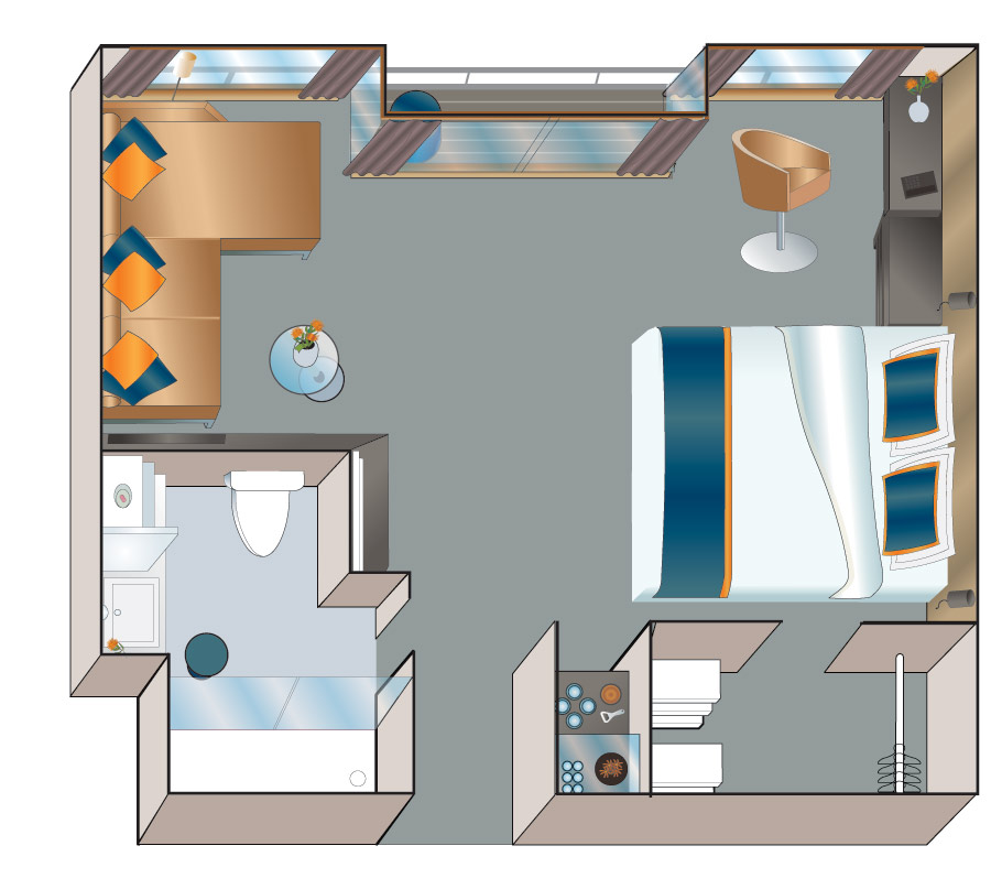 Travel in luxury and style when you choose one of our Deluxe Suites. Our largest en-suite cabins, at 26.4 square metres, a walk-out balcony, walk-in wardrobe an river-view lounge area.