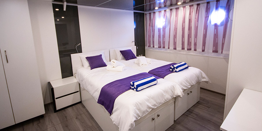 • Cabins feature air-conditioning, a safe, an audio system, a wardrobe, desk, sofa, and a window. En-suite bathrooms include a shower and a hairdryer and beds can be configured to twins or a double.