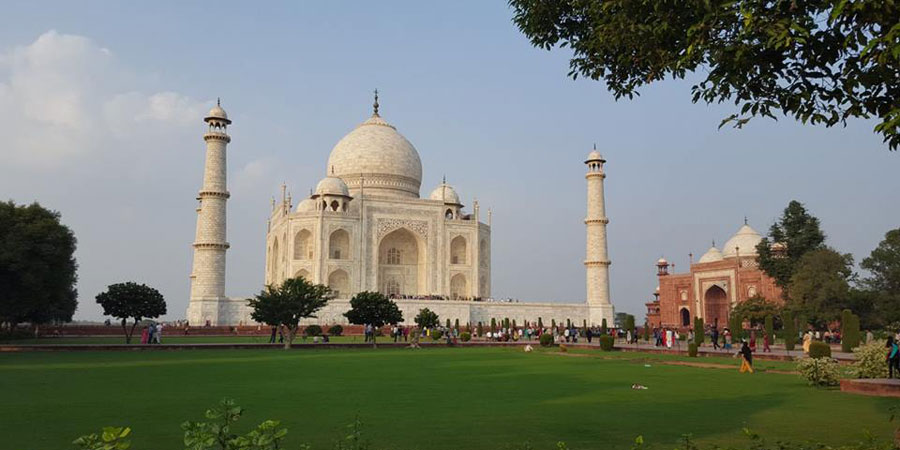 The morning came all too soon but the day's itinerary was something worth getting up for! We were bound for Agra, home of the Red Fort and the iconic Taj Mahal. We boarded our train service and headed out into the lush Indian countryside, arriving in Agra two hours later. Agra Station was equally as chaotic as Delhi and we soon finally found our ride and left the bustle behind. We could just glimpse the magnificence of the Taj Mahal far over the Agra rooftops from our position in the hotel's rooftop café. Our first stop in Agra was the incredible Red Fort. Still partially occupied by the Indian Army, we enjoyed a guided tour of the sandstone and marble fortress, and our guide could not have been more knowledgeable.