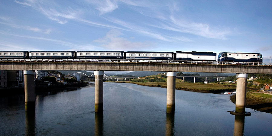 Spain's first tourist train, built in 1983 from historic 1920s carriages, El Transcantabrico takes you through the lush green land of Northern Spain, in elegance and luxury. Relax in one of the four salon cars, including the panorama car where you can enjoy a drink on plush sofas and watch the landscapes go by the panoramic windows.