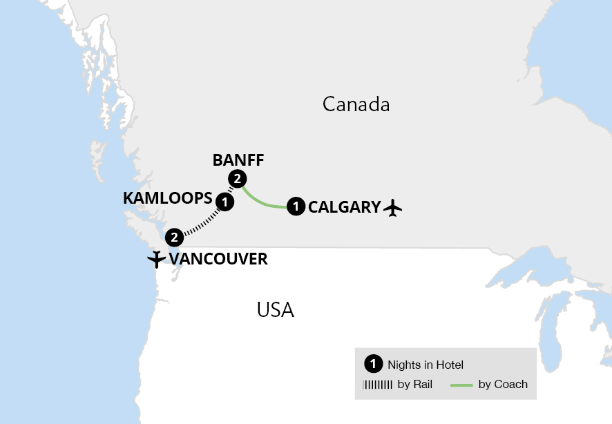 Discover the spectacular landscapes of western Canada on this journey across the Rockies, from coastal Vancouver to cosmopolitan Calgary. Take in the bustling atmosphere of Vancouver, before setting out into the Rockies aboard the world-famous Rocky Mountaineer. Admire unforgettable views from the panoramic windows during two daytime journeys,...